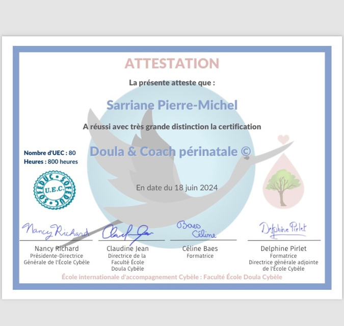 C'est ainsi que je me suis formée en tant que Doula et coach périnatale, ainsi qu'en sophrologie et naturopathie pendant la période périnatale, afin d'accompagner les parents et futurs parents dans ce merveilleux voyage.